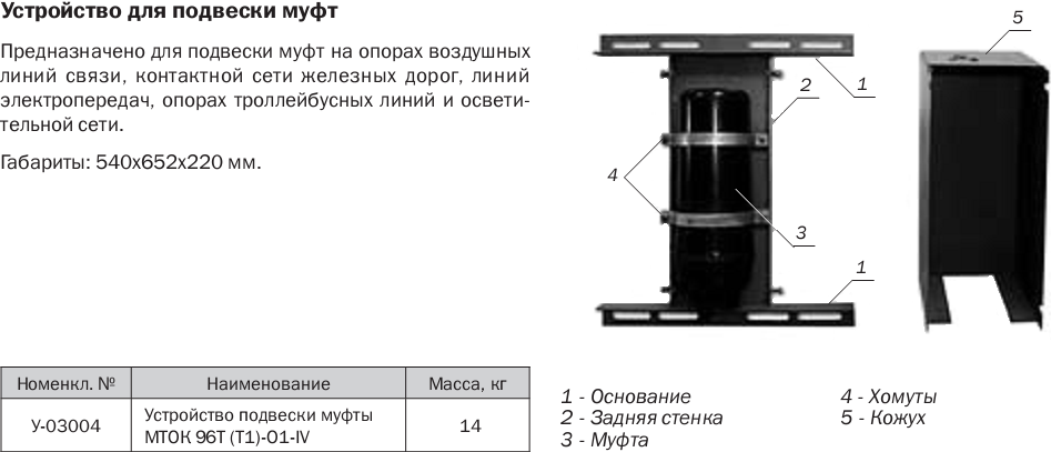 Устройство крепления муфт, кожух, для МТОК столб, стена 130106-00023/У-03004
